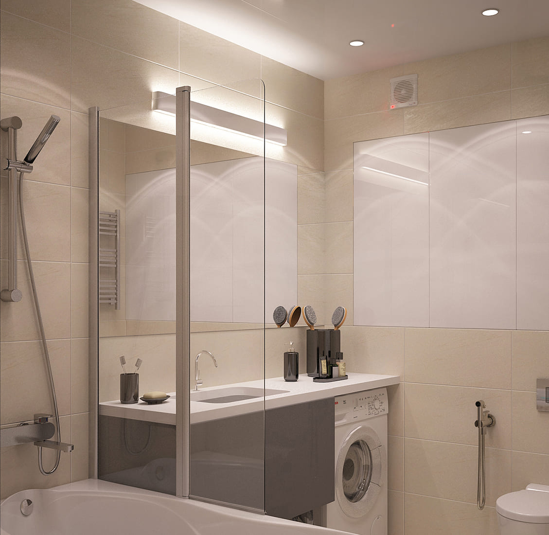 Такой дизайн ванной комнаты отлично подойдет для тех, кто ценит комфорт и функциональность в сочетании с современным стилем. Пространство будет не только удобным, но и эстетически приятным, превращая каждое использование ванной в настоящее наслаждение.