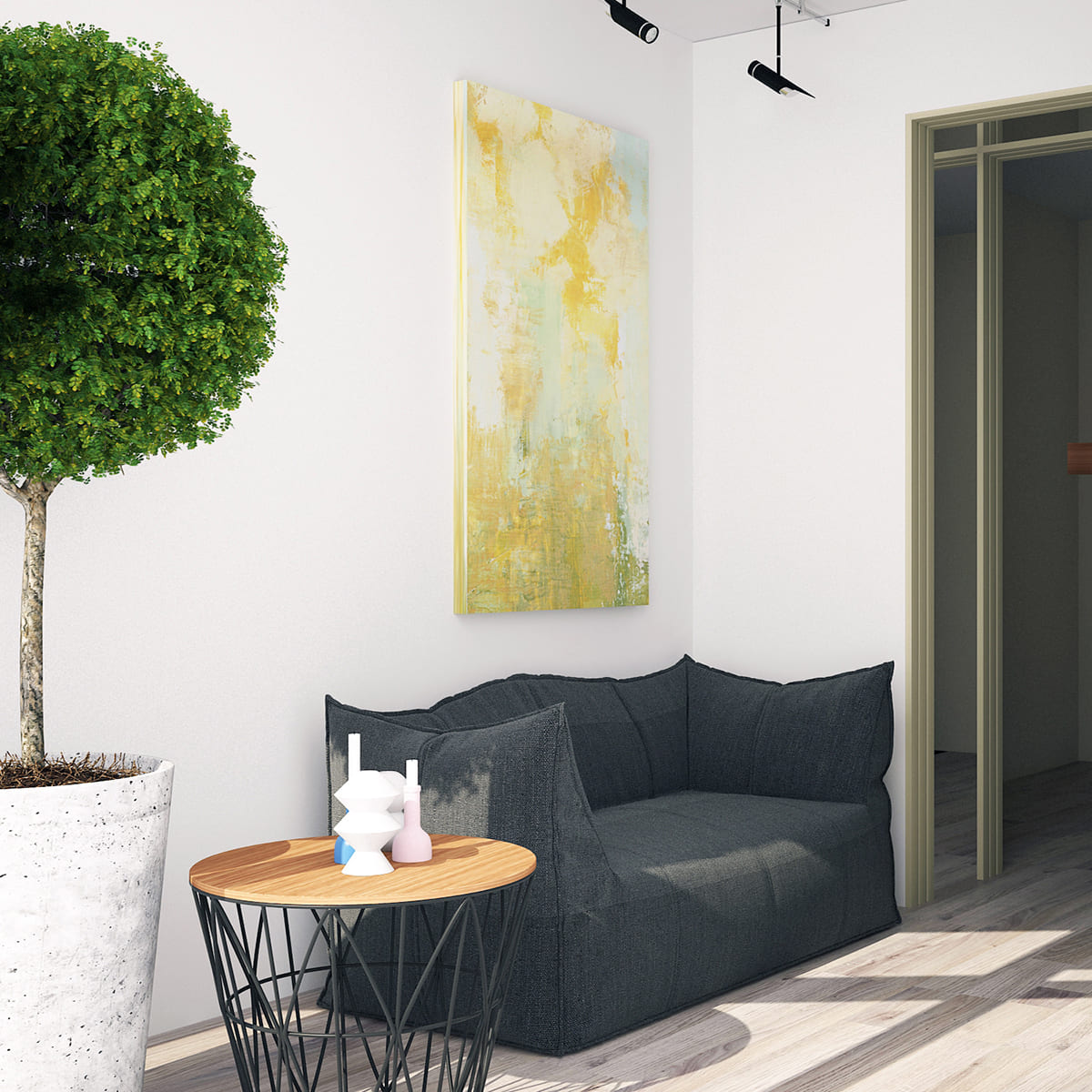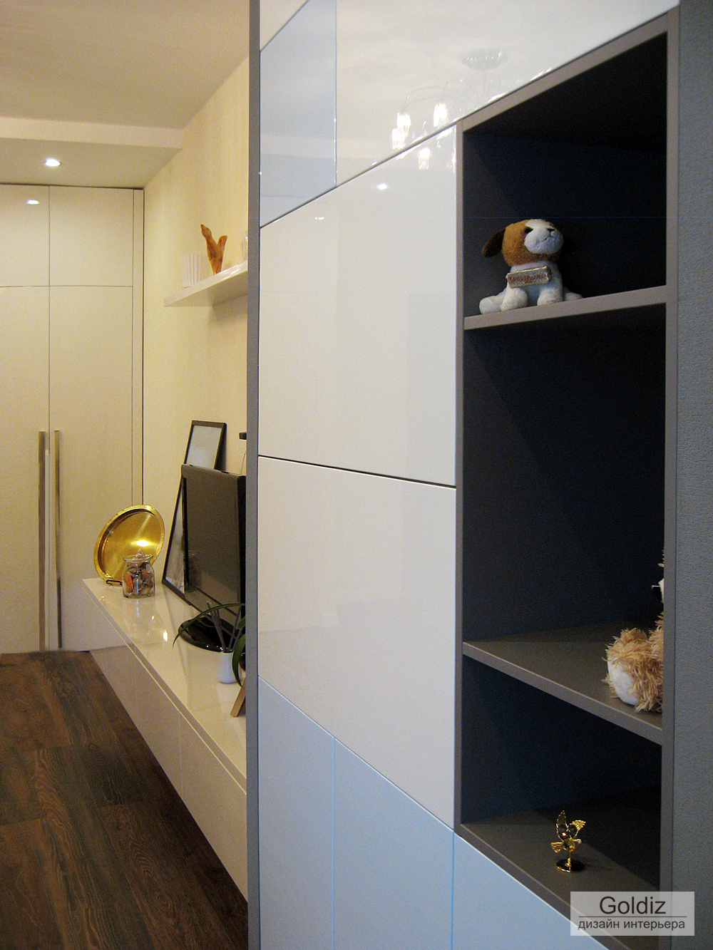 Из-ачально дизайн-проект был заказан только по одному помещению, но в дальнейшем к нашей помощи было решено обратиться и по остальным помещениям- ванной, балкону, кухни и прихожей.